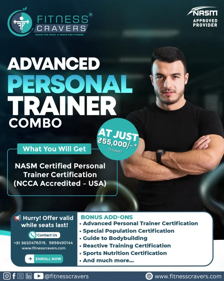 Various National and International Certifications viz Diploma in Personal training , NASM Certification in Personal Training (CPT), Master Personal Trainer Certification Course (MPT), Certification in Sports Nutrition (CSN), CPR AED and others, make you competent in the existing market with a knowledge of anatomy, physiology, biomechanics and Life saving Techniques in a Human body.